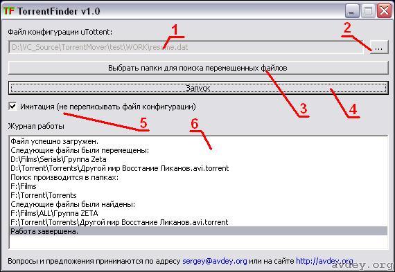 Помощник пользователям BitTorrent клиента µTorrent. Даёт возможность перемещать файлы находящиеся на раздаче (а также файлы torrent) в произвольное место HDD. От пользователя требуется: "раскидать" файлы по удобным для него папкам, запустить данную утилиту. Программа найдет перемещенные файлы и исправит файл конфигурации µTorrent в соответствии с новым расположением файлов.